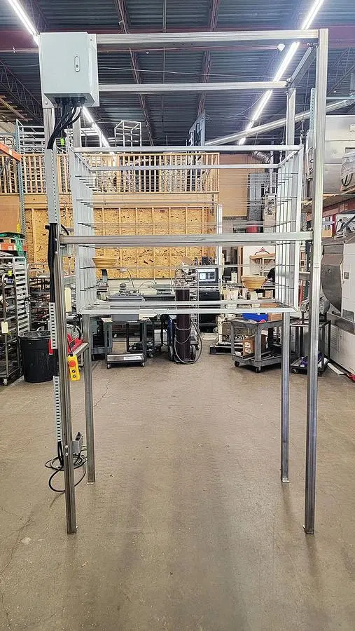 Banneton Electric Storage Rack, All 2"x2" Stainless Steel Design, Bolted together for easy installation, Over all Dimensions: 120" H x 70" W x 30" D, Carrage made from 1" x 1" Aluminum Tubing with Stainless Steel cross stringers, Vevor Electric Winch w/ remote control, Voltage: 120 / 1 ph