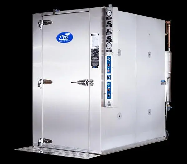 The LVO RW2580 Pan and Rack washer is fully automatic, easy to install, and economical to operate. Capable of washing 780 pans per hour, and made of a 14 gauge stainless steel cabinet, the RW2580 is designed to last a lifetime. With eight rotating stainless steel spray arms, each with strategically positioned high velocity nozzles, the powerful 25 Horsepower pump subjects your racks, pans, bowls, or utensils to a high pressure wash. With every cycle, the RW2580 blasts away soil, followed by a sanitizing rinse, for greater cleanliness.